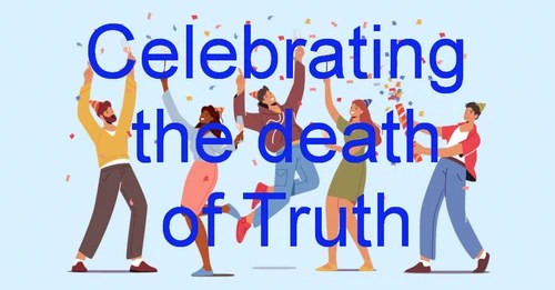 When someone celebrates the death of another know that most likely the one’s death being celebrated was someone giving Truth. Making those that do the celebrating worshippers of the father of all lies.